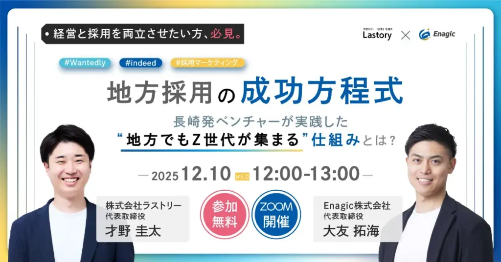 そんな皆様に向けて、九州発のベンチャーが**2ヶ月でZ世代正社員採用を実現**した実例と、限られた時間・予算でも回せる成功法則をお伝えいたします。